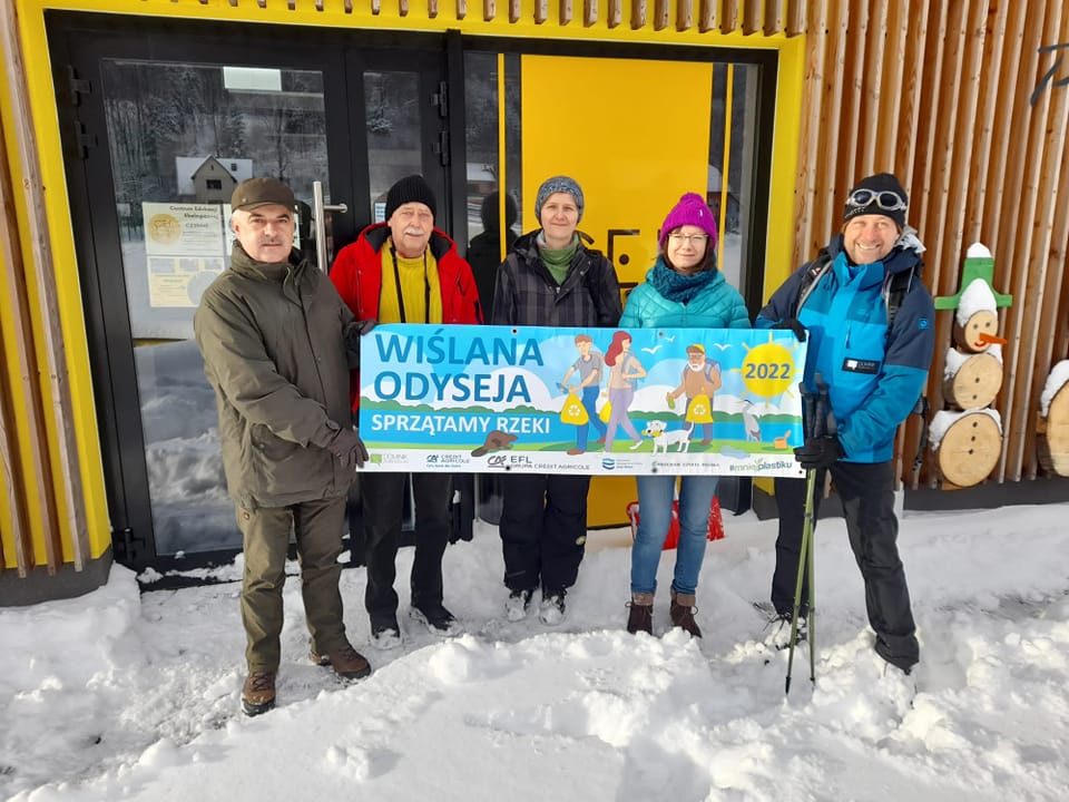 Dominik Dobrowolski - ekolog i podróżnik, wspólnie z bankiem Credit Agricole i spółką EFL w minioną sobotę, 22 stycznia, rozpoczął swoją kolejną wielką akcję ekologiczną – Wiślaną Odyseję. W ciągu dziesięciu miesięcy chce posprzątać brzegi rzeki Wisły, która ma swój początek u podnóży Baraniej Góry. Dlatego też Wiślana Odyseja miała swój start na terenie Centrum Edukacji Ekologicznej w Wiśle, gdzie została zaprezentowana wystawa edukacyjna. To fotografie, na których można zobaczyć śmieci zebrane przez ekologa na wybrzeżach Bałtyku, które dotarły tam nurtami rzek. W spotkaniu inauguracyjnym wyprawy udział wzięli przedstawiciele Nadleśnictwa Wisła na czele z Nadleśniczym Andrzejem Kudełką, przedstawiciele mediów oraz pracownicy Centrum Edukacji Ekologicznej. Samtąd to Dominik Dobrowolski wyruszył na pierwszy etap wzdłuż Wisły aż do Jeziora Goczałkowickiego.
