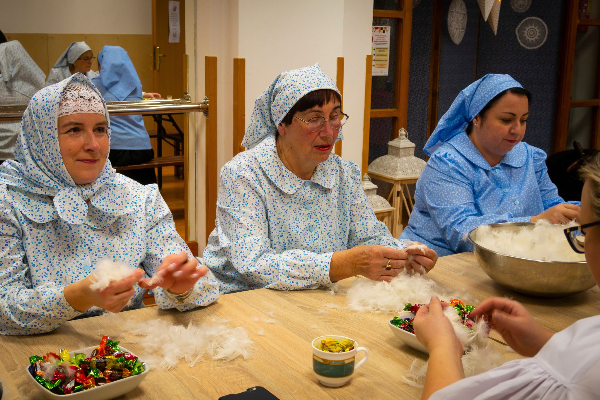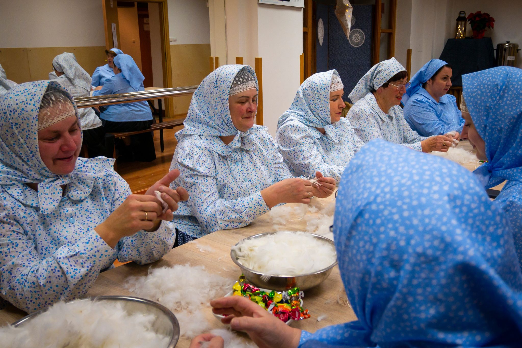 W piątkowe popołudnie 10 grudnia 2021r. w sali Wiślańskiego Centrum Kultury odbyły się tradycyjne wiślańskie Szkubaczki, czyli darcie pierza. Przy wspólnym stole zasiadły uczestniczki projektu "Wiślański Lónty" i wspólnie przy opowieściach, wspomnieniach i kupie śmiechu szykowały wypełnienie pierzyn.