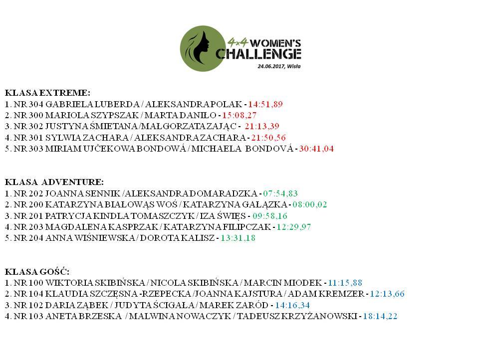 Jak się okazało kobiety za kółkiem terenowych pojazdów radziły sobie świetnie. Honorowy start odbył się na placu Hoffa, a udział w nim, oprócz organizującej całe przedsięwzięcie Dagmary Kowalczyk, wzięli najlepszy polski rajdowiec Kajetan "Kajto" Kajetanowicz i burmistrz Wisły Tomasz Bujok. Po prezentacji kobiecych załóg i pamiątkowych zdjęciach z "Kajtem", rywalizacja przeniosła się na tor off-roadowy "Pod Piramidą", gdzie panie miały do pokonania trudną i najeżoną przeszkodami trasę. Po sportowej i prowadzonej w duchu fair play walce, w Amfiteatrze im. Stanisława Hadyny dokonano ceremonii wręczenia nagród i pucharów. Całość zakończył koncert zespołu Zgredybillies.