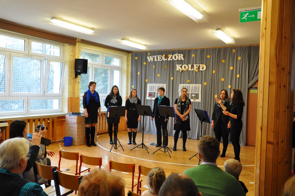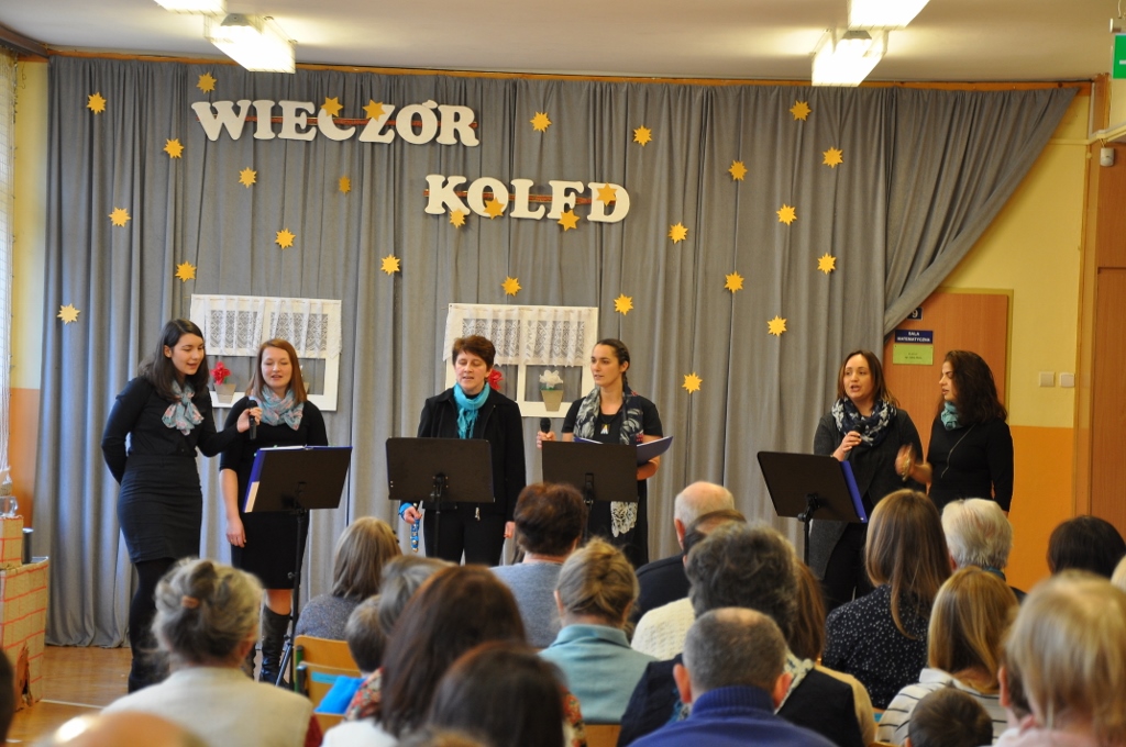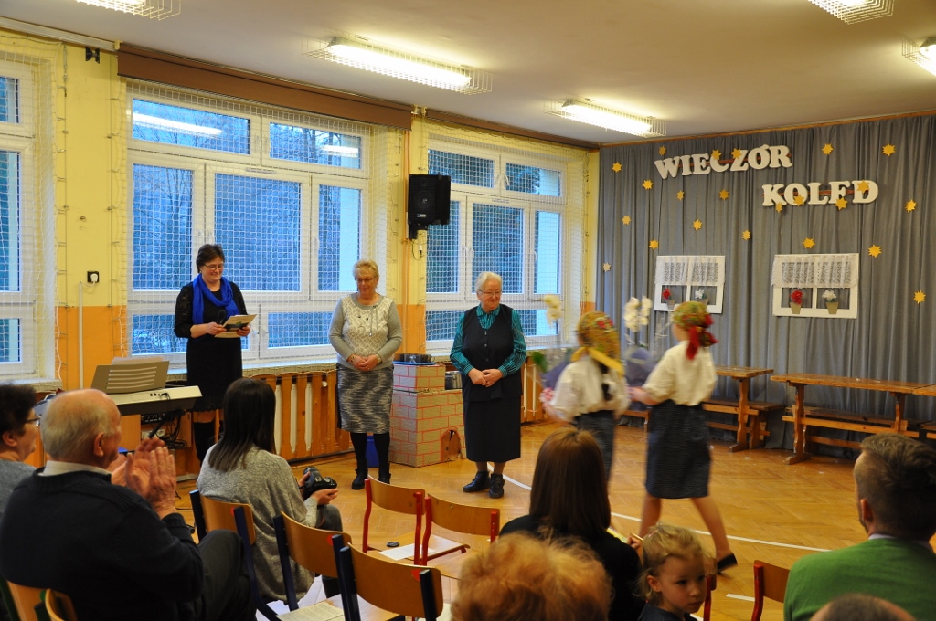 Po powitaniu zgromadzonych przez dyrekcję szkoły, uroczystość rozpoczęła się od wspólnego śpiewu oraz występu uczniów klasy V, którzy wykonali wiązankę kolęd na dzwonkach. Bardzo nam miło, że nasze zaproszenie przyjął w tym roku Wiślański Zespół Kameralny pod dyrekcją Agnieszki Szarzec, który podczas swojego występu zaprezentował zgromadzonym swój repertuar. Potem została wspólnie odśpiewana kolejna kolęda, a w tym czasie przygotowano scenografię do przedstawienia regionalnego, które było ostatnim punktem programu. To już tradycja, że na czerniańskich Wieczorach Kolęd kultywujemy także lokalne zwyczaje i gwarę. W tym roku uczniowie klas III – VI przygotowali scenkę pt. „Szkubaczki”, która spotkała się z bardzo ciepłym przyjęciem widowni. Na zakończenie wieczoru dyrektor Elżbieta Szajtauer poprosiła na środek naszych honorowych gości – Marię Witucką i Elżbietę Śliż, które dwadzieścia pięć lat temu zapoczątkowały organizację Wieczorów Kolęd w Czarnem. Obie panie, które w dowód wdzięczności otrzymały kwiaty, wyraziły swój podziw i radość z faktu, że tradycja zapoczątkowana przez nie jest nadal kultywowana na przestrzeni tylu lat. Na koniec wszyscy zgromadzeni mogli skorzystać z poczęstunku przygotowanego przez Radę Rodziców, która prężnie działa w naszej szkole pod przewodnictwem Doroty Heczko i czynnie włącza się w organizację szkolnych imprez.