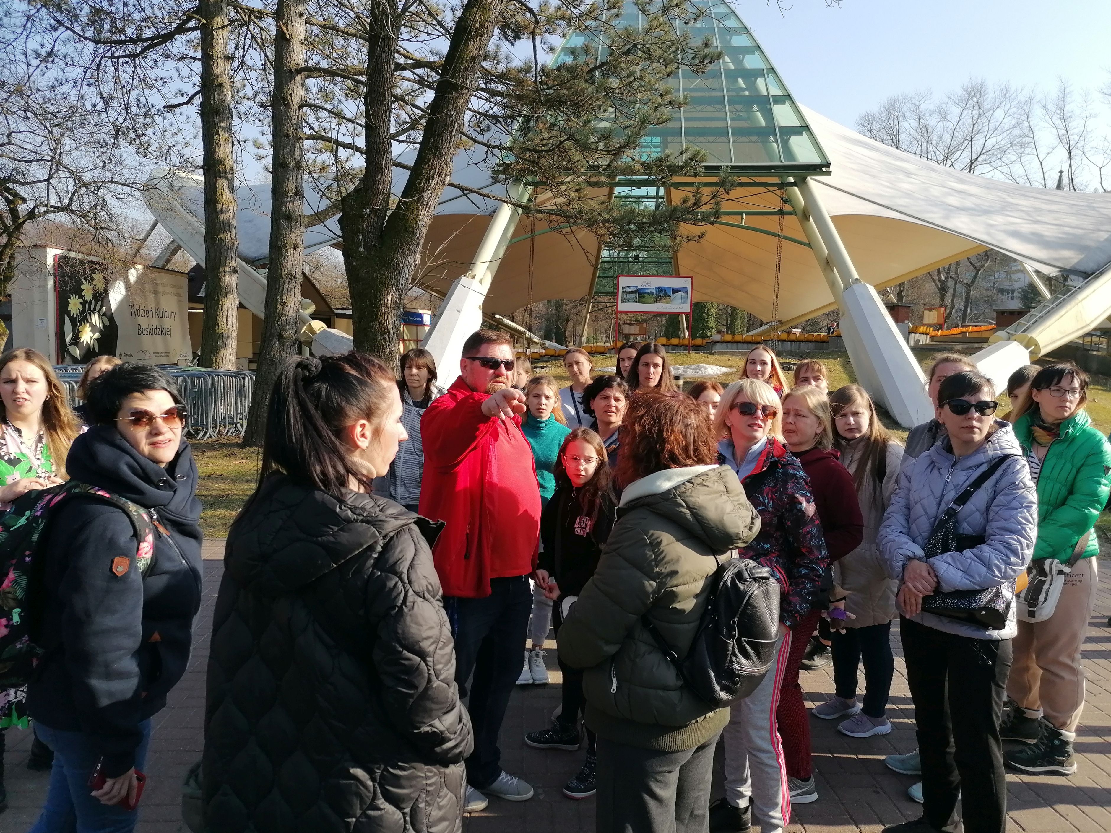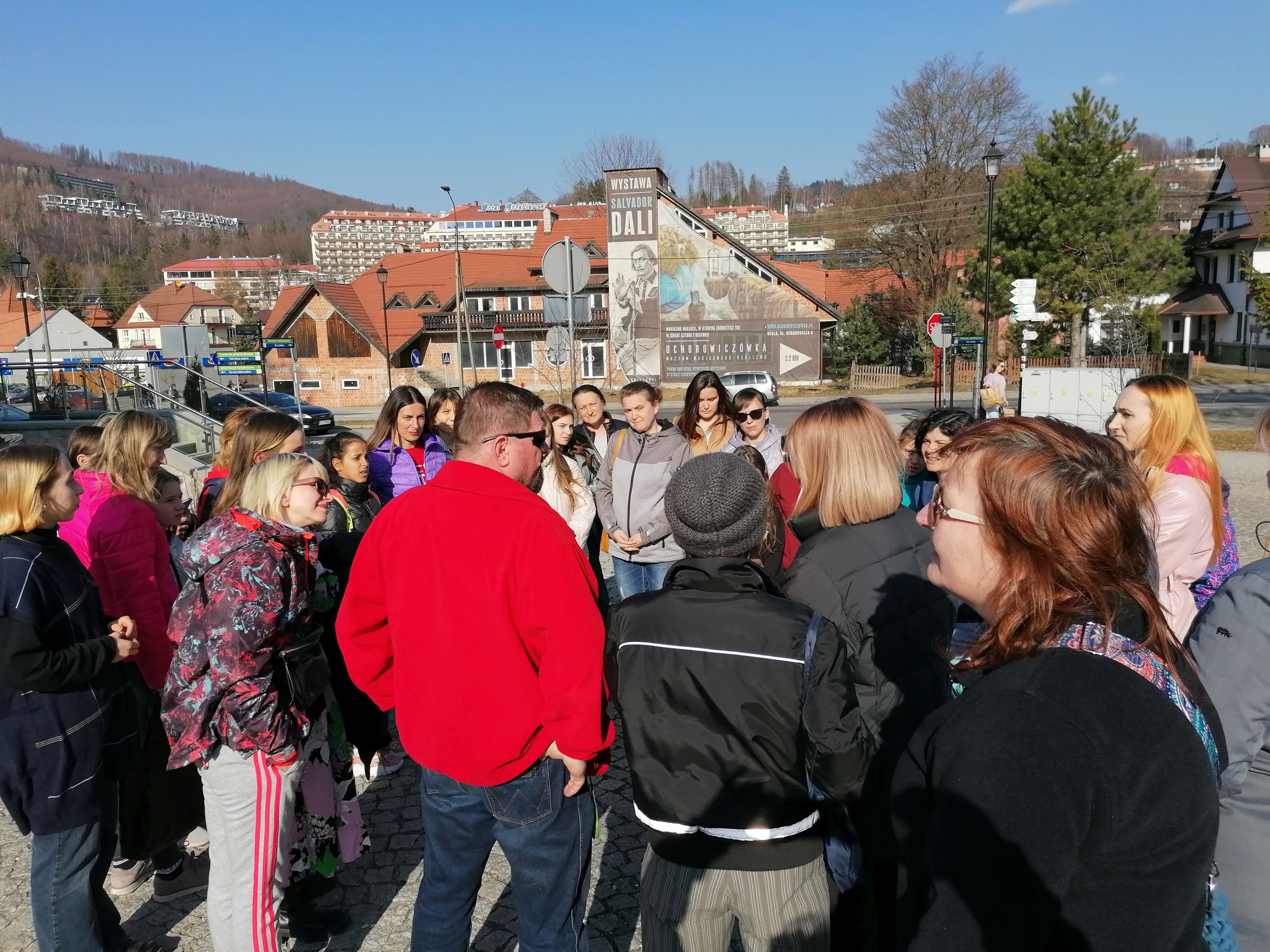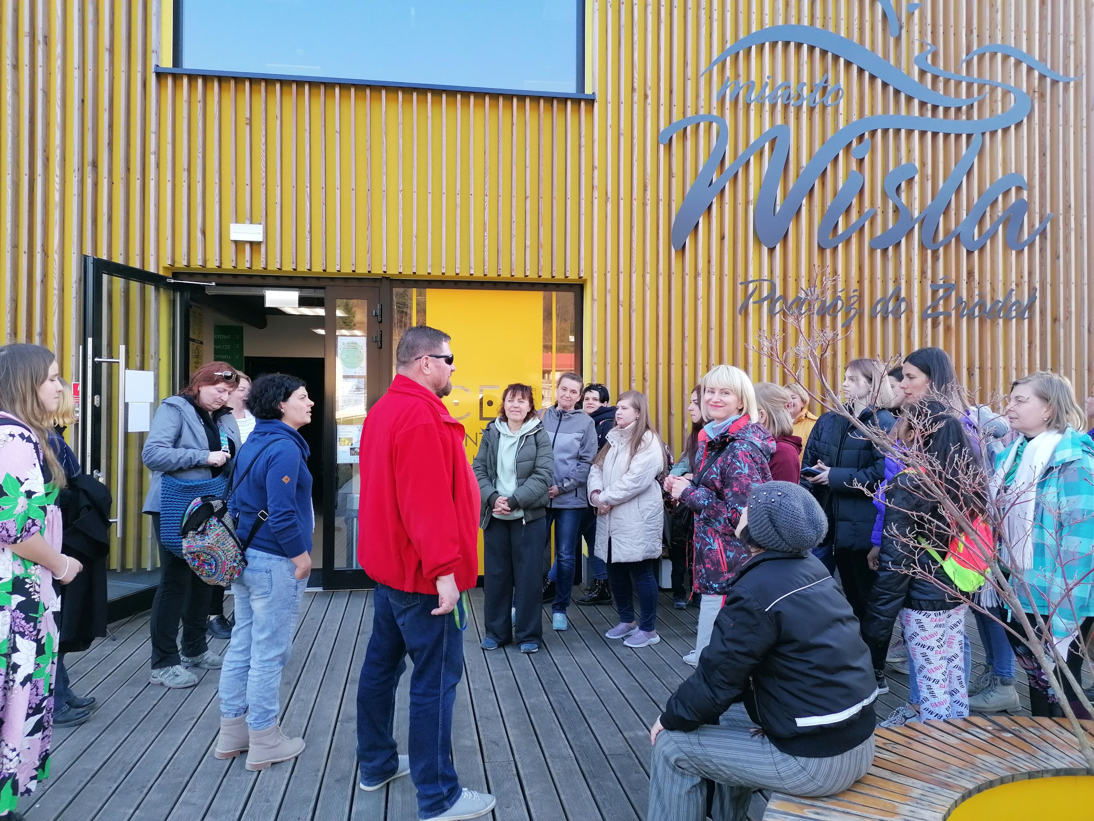 W piątek 25.03.2022 r. odbył się spacer po Wiśle dla uchodźców z Ukrainy. Miejscem zbiórki było Centrum Przesiadkowe obok Browaru Wisła. Zainteresowanych poznaniem miasta było ok. 40 osób. Spacer prowadził wykwalifikowany przewodnik Krzysztof Rudziński z PTTK odział Wisła, a na język ukraiński tłumaczyła jedna z uczestniczek. Zależało nam na odwiedzeniu najważniejszych punktach w mieście. Nasz spacer zaczęliśmy od zwiedzenia dworca PKP, którego historie poznaliśmy w skrócie, następnie zobaczyliśmy Pałacyk Myśliwski Habsburgów. Stamtąd udaliśmy się na rynek. Po drodze przewodnik pokazał wszystkim, gdzie znajduje się m.in. biblioteka miejska, urząd, apteki, poczta, sklepy. Zaprowadził nas również na bulwar, by wskazać miejsca do zabaw dla dzieci – boiska, ścianki wspinaczkowe, place zabaw. Zwiedziliśmy także rynek, poznaliśmy też historie najstarszego budynku w Wiśle. Idąc przez park posłuchaliśmy historii o założeniu miasta Wisły. Następnie drogą spacerową wzdłuż rzeki doszliśmy do Centrum Edukacji Ekologicznej na Jonidle, gdzie czekał na nas słodki poczęstunek i ciepłe napoje. Tam poznaliśmy trochę wiślańską przyrodę oraz dowiedzieliśmy jak dużą role w przyrodzie odgrywają pszczoły. Uczestnicy spaceru byli zainteresowani tym, o czym im opowiadano. Była to również okazja, by mogli trochę poznać się między sobą.