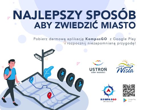 Aby rozpocząć zwiedzanie, wystarczy pobrać darmową aplikację KompasGO i już można, z dowolnego punktu na trasie ruszać w teren. Po drodze nie ominiemy takich punktów jak Pijalnia Wód, Dąb Sobieskiego i Muralu na Bibliotece Miejskiej w Ustroniu, czy galerii trofeów Adama Małysza, Muzeum Magicznego Realizmu czy słynnych kamiennych niedźwiadków w Wiśle. Na trasie czekają też miejsca odpoczynku, lodziarnie, pizzerie czy inne atrakcje, które z pewnością zainteresują nie tylko dzieci czy młodzież, ale i dorosłych.